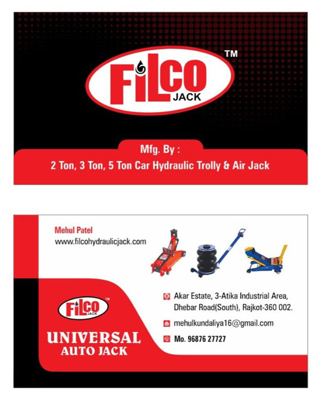 Universal Auto Jack Manufacturers of Filco Brand Hydraulic Trolley Jack, "2" Ton Hydraulic Trolley Jack, "3" Ton Hydraulic Trolley Jack, "5" Ton Heavy Hydraulic Trolley Jack, Hydraulic Car Trolley Jack, Portable Hydraulic Trolley Jack, Hydraulic Vehicle Jack Stand, Hydraulic Trolley Jack Stand, Hydraulic Floor Trolley Jack Manufacturer Supplliers at Rajkot Gujarat India